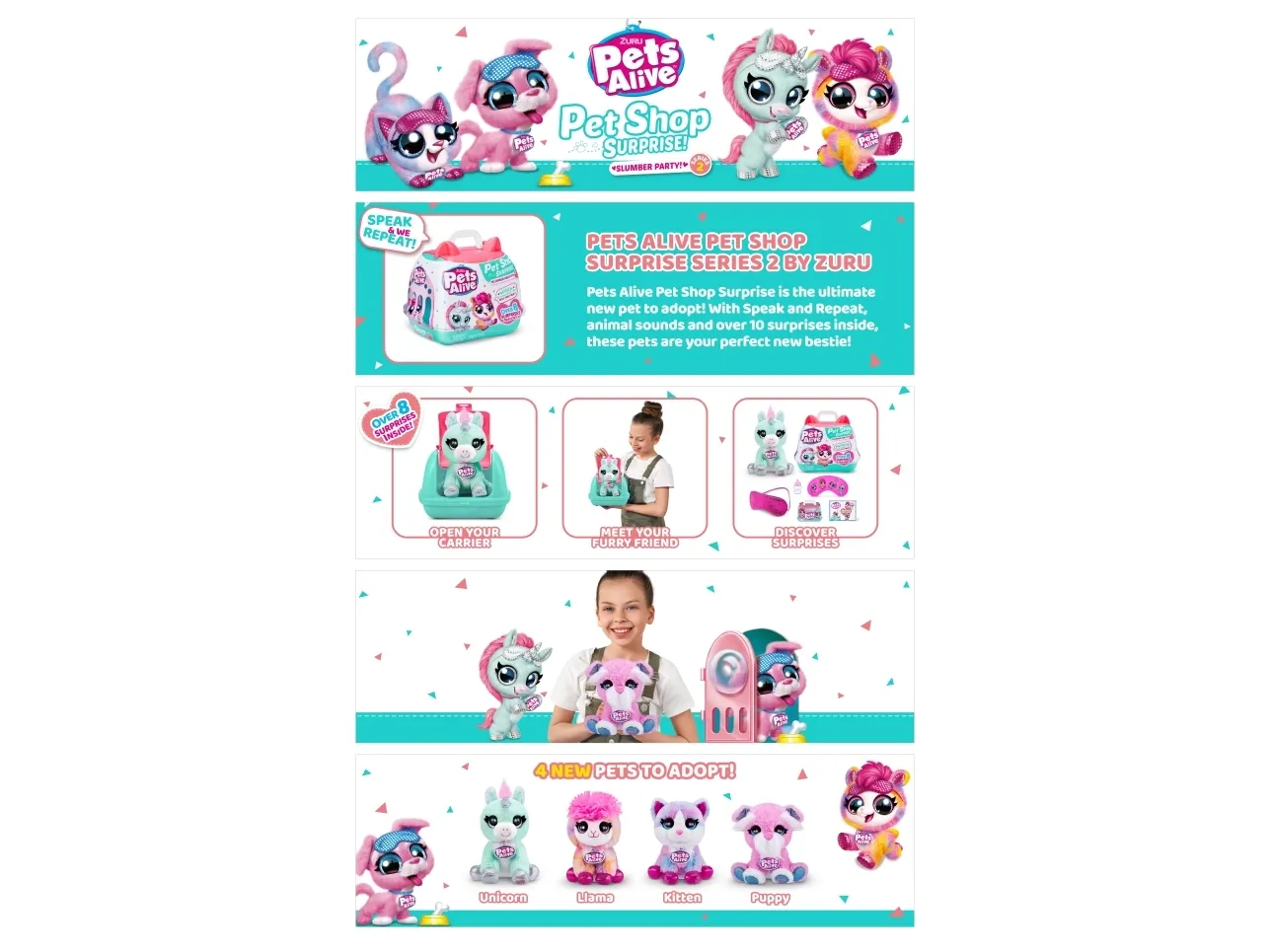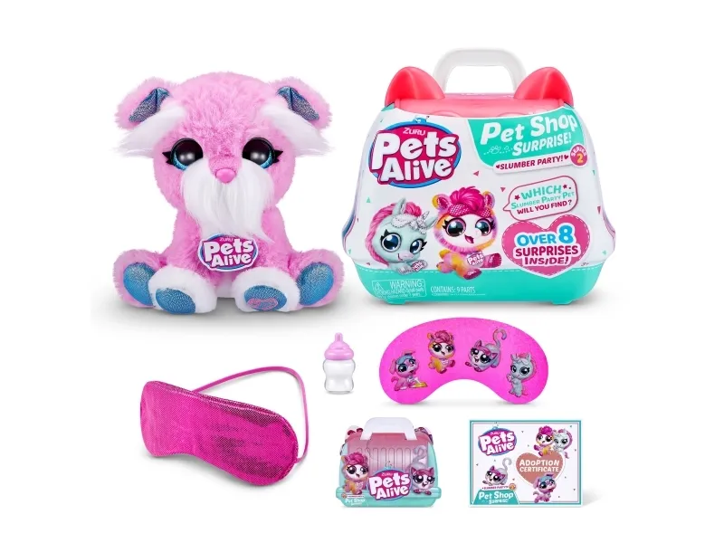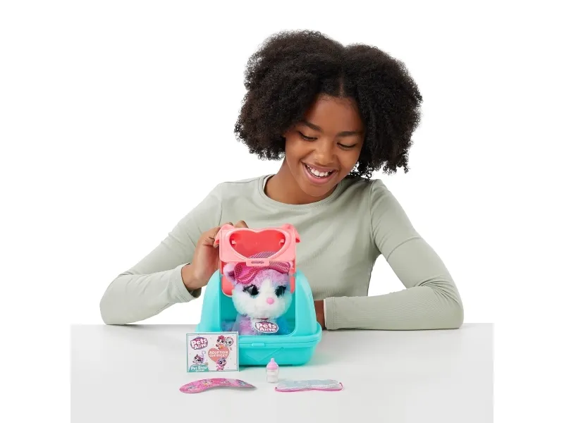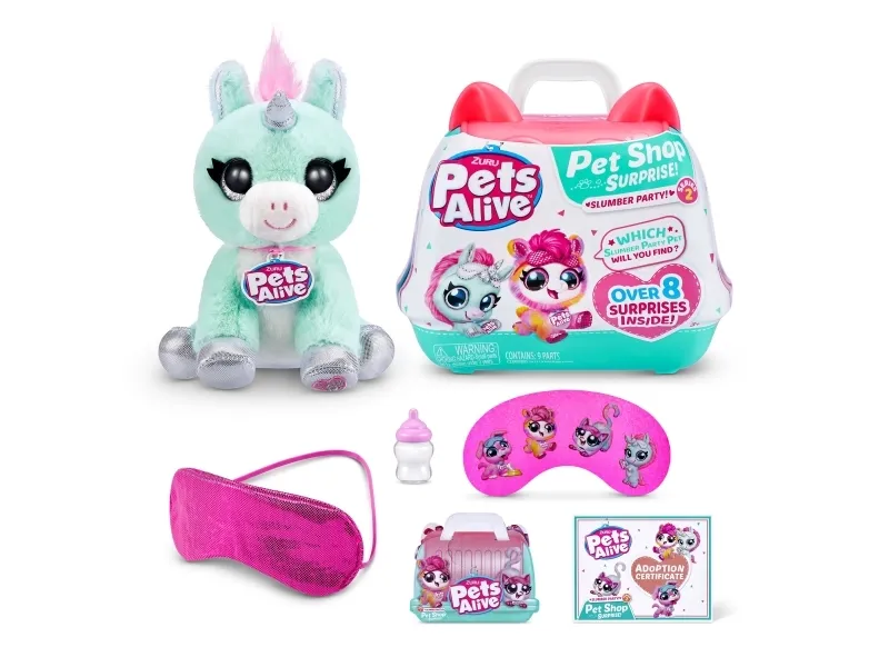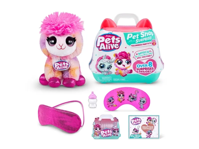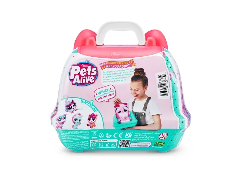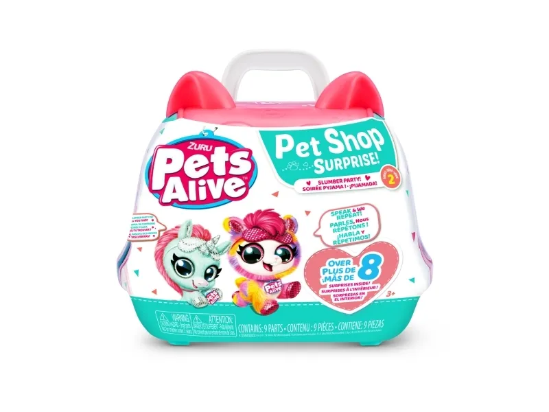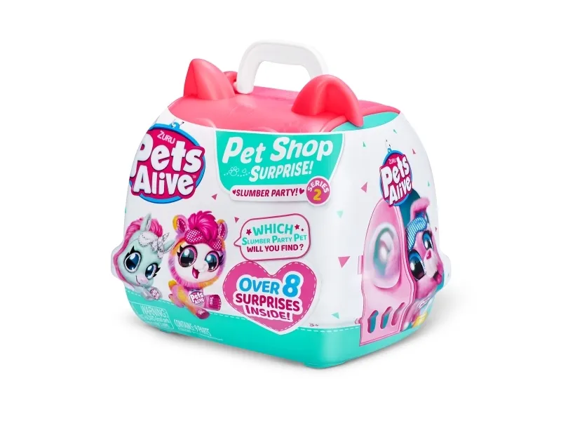 Pets Alive Pet Shop Surprise Series 2 on täällä! Nämä ovat upeita uusia lemmikkejä adoptoitavaksi, halattavaksi ja vuorovaikutukseen, ja niissä on jopa Speak and Repeat, eläinten ääniä ja yli 10 yllätystä! Avaa lemmikkipidike paljastaaksesi, minkä söpön lemmikin olet adoptoinut, ja juhli sitten adoptiota upouudella pyjamajuhlateemalla! Syötä ihastuttavalle lemmikkillesi söpö pullo, pue se omaan makuuhattuun ja pue pieni unimaski ennen nukkumaanmenoa hauskan adoptiojuhlan päätteeksi! On 4 lemmikkiä kerättäväksi; kissanpentu, pentu, laama ja yksisarvinen! Mistä lemmikistä tulee uusi adoptiokaverisi?