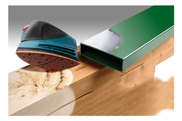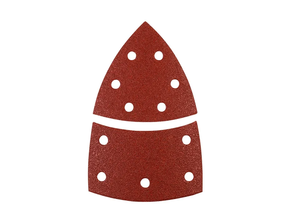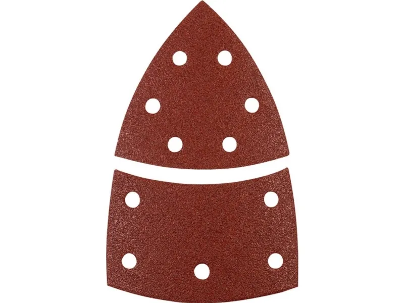 Detail sanding discs, 100 x 62, 93mm, for wood and metal, aluminium oxide abrasive coated, phenolic resin bonded, strong backing, with hook-and-loop fabric backing, punched, for use with detail sanders, for sanding metal and wood, paint, varnish, filler,kwb 496108. Quantity per pack: 5 pc(s)