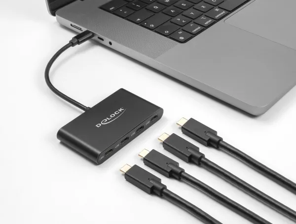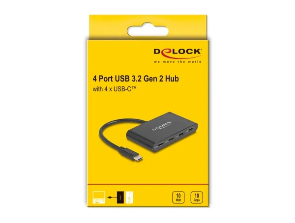 Discover the power of enhanced connectivity with the Delock USB hub. Designed for those who demand high-speed data transfer and versatile functionality, this hub features four USB-C 3.2 Gen 2 ports, each capable of up to 10 Gbps transfer speeds, ensuring your data moves quickly and reliably. The hub is encased in a durable aluminum housing, making it a robust addition to your desktop setup. With the inclusion of DisplayPort Alternate mode, it goes beyond traditional hubs by supporting video output, perfect for presentations or extending your workspace. Included in the package is a 15 cm USB-C cable, facilitating an easy connection to your devices. Whether for professional use, gaming, or multimedia, this hub is designed to meet the demands of any high-performance setup.