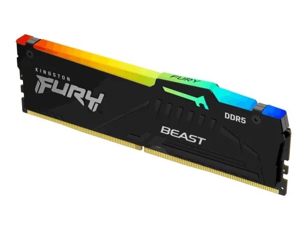 Kingston FURY Beast RGB tarjoaa lisää suorituskykyä ja tyyliä suurilla nopeuksilla, aggressiivisella muotoilulla ja RGB-valaistuksella, joka kulkee moduulin pituussuunnassa tasaisia ja upeita tehosteita varten. Siinä on Plug-and-Play-automaattinen ylikellotus suurilla nopeuksilla, ja se on sekä Intel XMP -valmis että valmis AMD Ryzenille. FURY Beast RGB pysyy viileänä tyylikkään, matalaprofiilisen lämmönjakajan ansiosta.