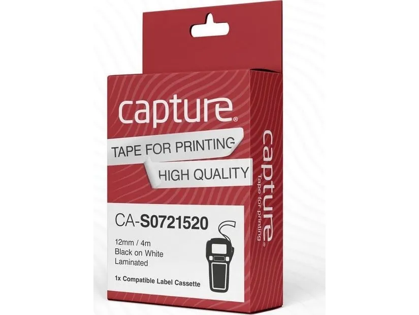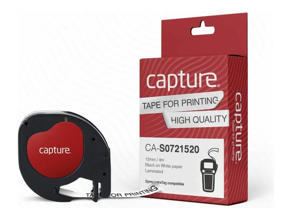 Capture - etikettiteippi - laminoitu - 1 kasetti(a) - Rulla (1,2 cm x 4 m) (vaihtoehto: DYMO S0721520, DYMO S0883990)